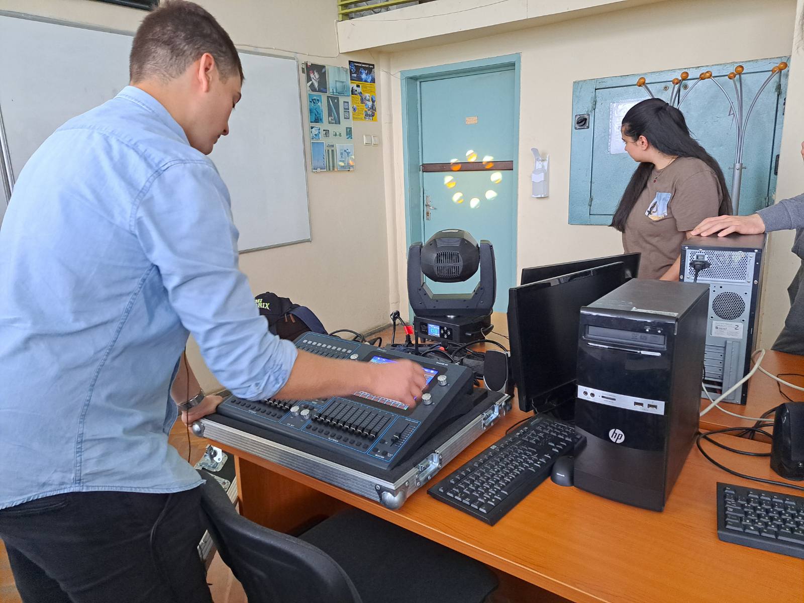 After seeing various options for control of the moving light and the control panel, the students had the opportunity to get a close touch with this type of technology and were very pleased. They looked in detail at the capabilities of the two devices and learned in detail how communication between them takes place.